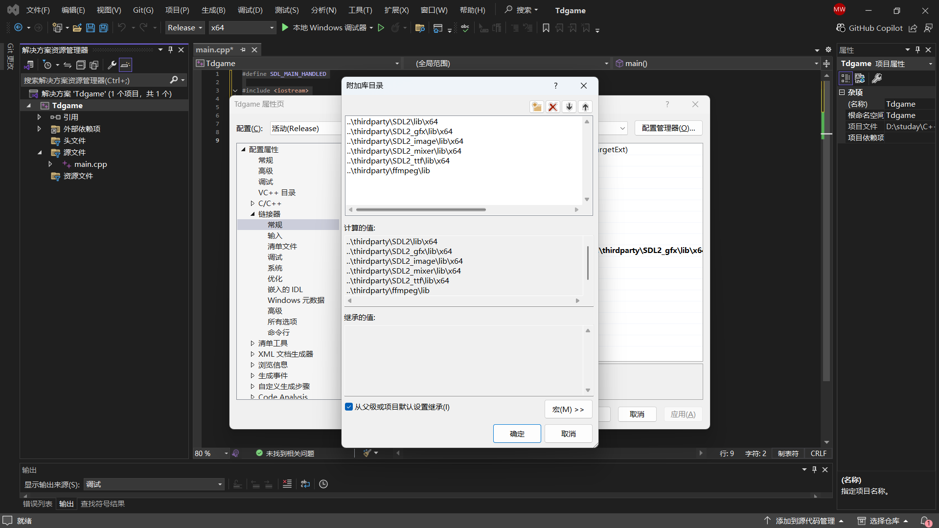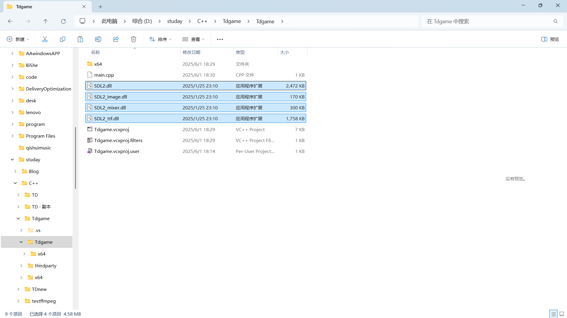 最后是将各个三方库的dll文件复制到项目Tdgame目录中,这样所有的三方库的导入就配置完成了。