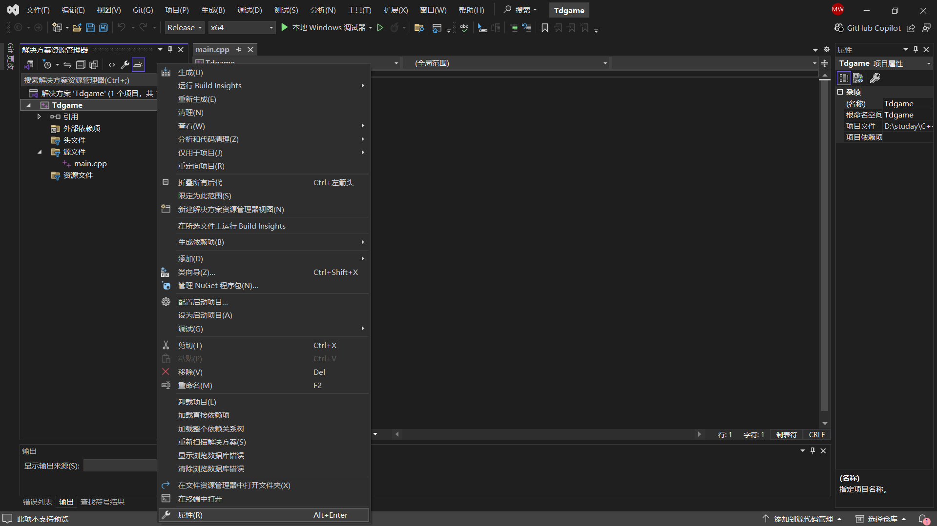 3.在Tdgame右键打开项目属性,在代码生成中将运行库改为多线程(/MT),然后点击应用。